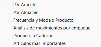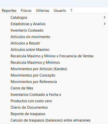 Obtenga información importante de sus existencias, recalcule sus máximos y mínimos, revise los productos que no se venden, obtenga un Kardex detallado por producto, exporte los reportes a Excel, etc.