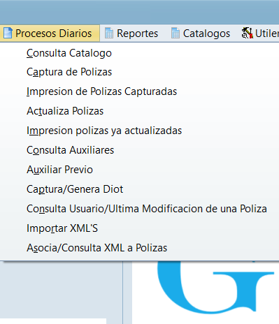 Capture sus pólizas, aféctelas a las cuentas, consulta auxiliares contables, imprima sus pólizas, vea un auxiliar previo antes de afectar sus pólizas